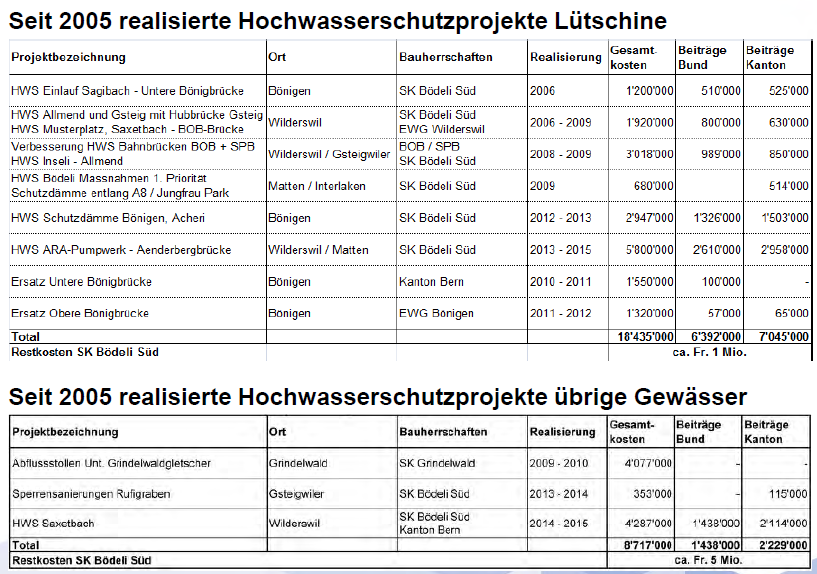 Projekt 2008 HWS Massnahmen 1. Priorität, Matten und Interlaken